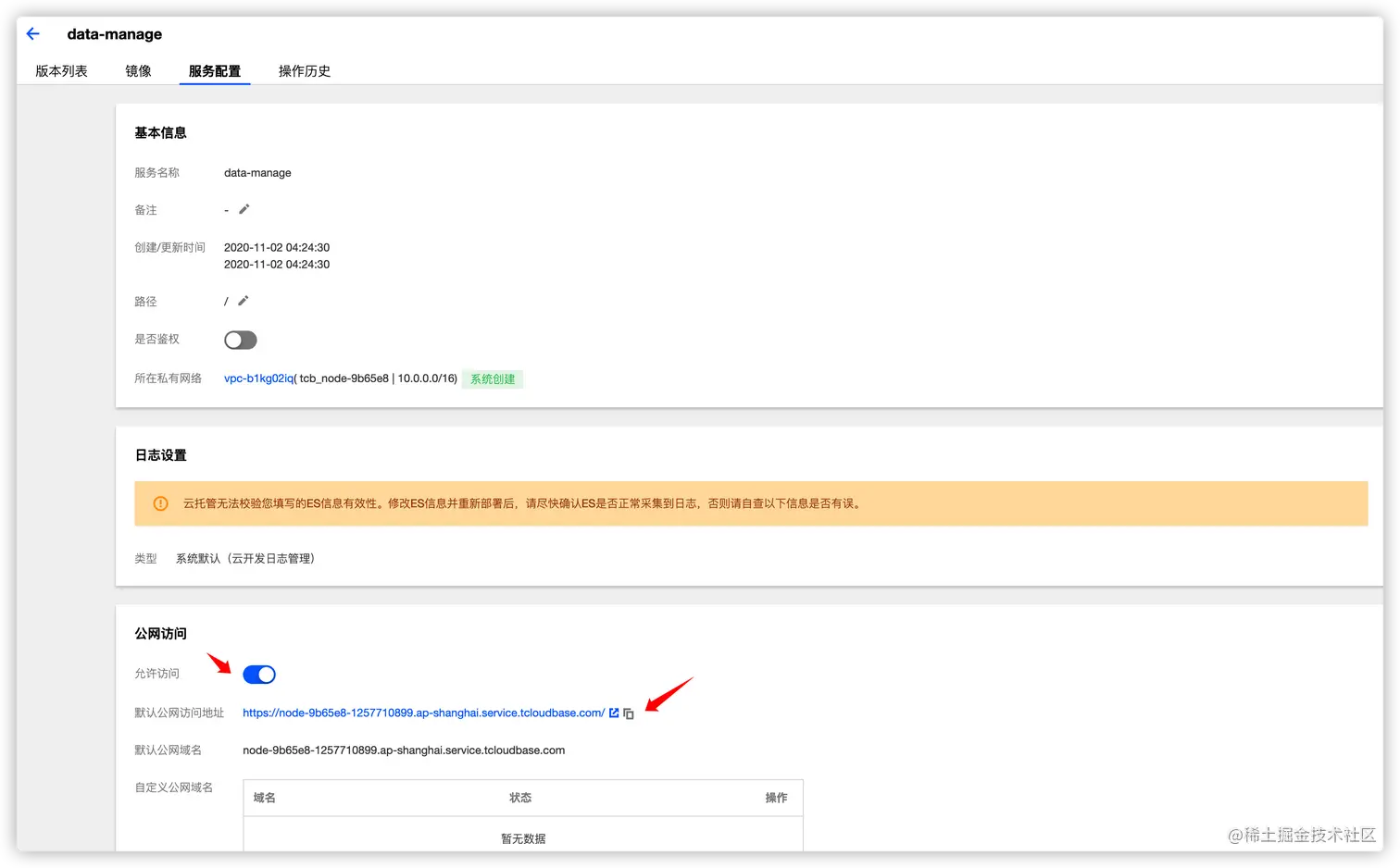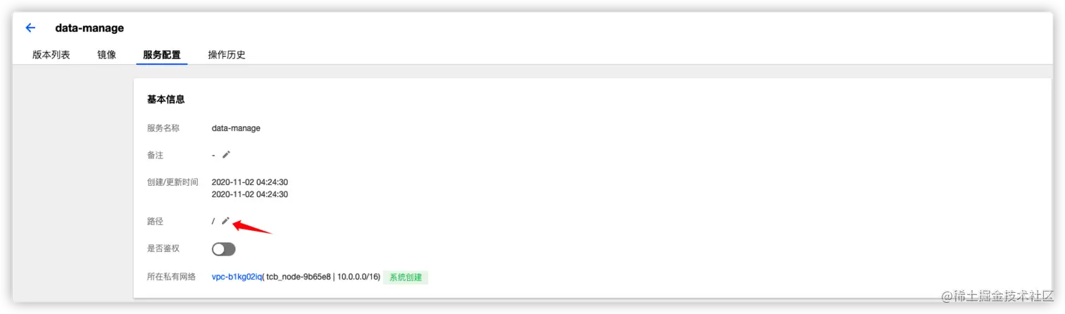 等待部署完成后,单击上方「服务配置」,单击「路径」,修改为/