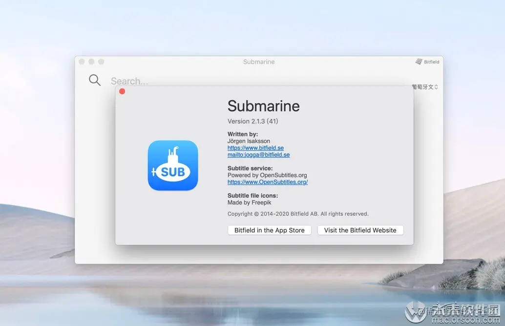 Submarine Mac版是一款非常实用的在线电影字幕匹配应用,它可以很快的找到你喜欢的语言的视频电影字幕,只需要将你需要匹配字幕的电影直接拖入到应用界面之中,字幕下载和搜索过程就会开始,你可以自定义你需要的语言类型的字幕,以便于适合你的语言和文化。