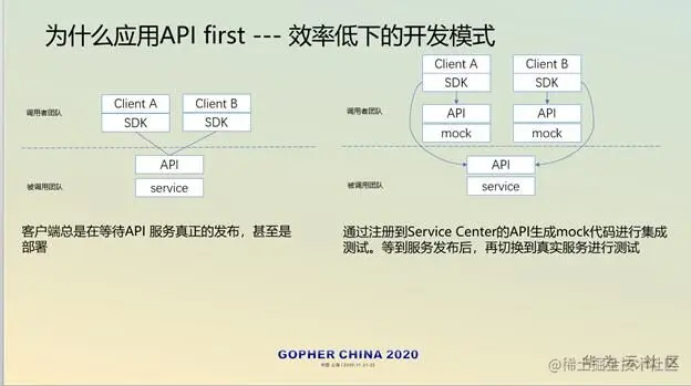 对比客户端开发团队等待后端的服务编写完成后,才开始进行集成开发的方式。高效方式是以文档为基准,客户端与服务端同时开发,客户端通过Mock去除对服务端的依赖。