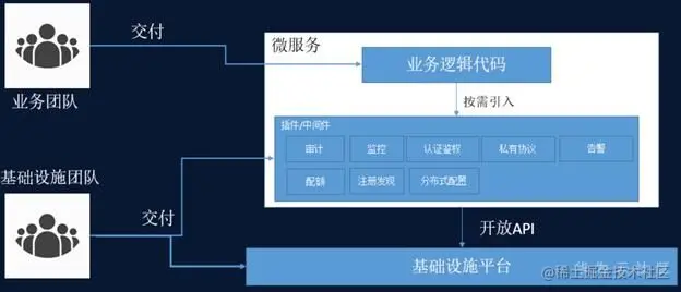 每个微服务都是个小团队开发的,有可能是同一个团队,也可能是不同团队,**我们所做的框架是为了定义一套最简化的范式(接口与模型),以此来减轻研发的成本,同时兼顾扩展性,不要对开发有过度的限制。**我们规范化了API first来审视API设计,依赖管理来审视合理的服务关系,并规定所有的能力要沉淀为插件与中间件,而这些都是为了定义研发团队开发与治理云服务的“通信协议”。