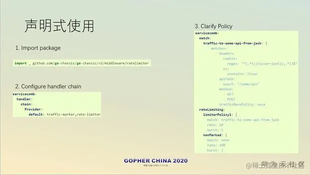 也提供了声明式使用方式,比如流量管理,其具备基于流量特征的限流能力。