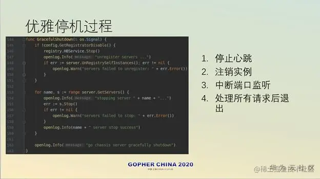 另外由社区开发者贡献的自定义优雅停机功能,可以允许用户劫持信号和停机处理过程,也可以在前后自定义处理过程。