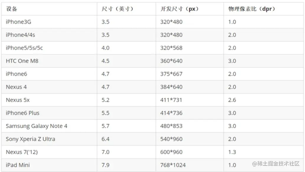 - 作为开发者无需关注这些分辨率,因为我们常用的尺寸单位是px