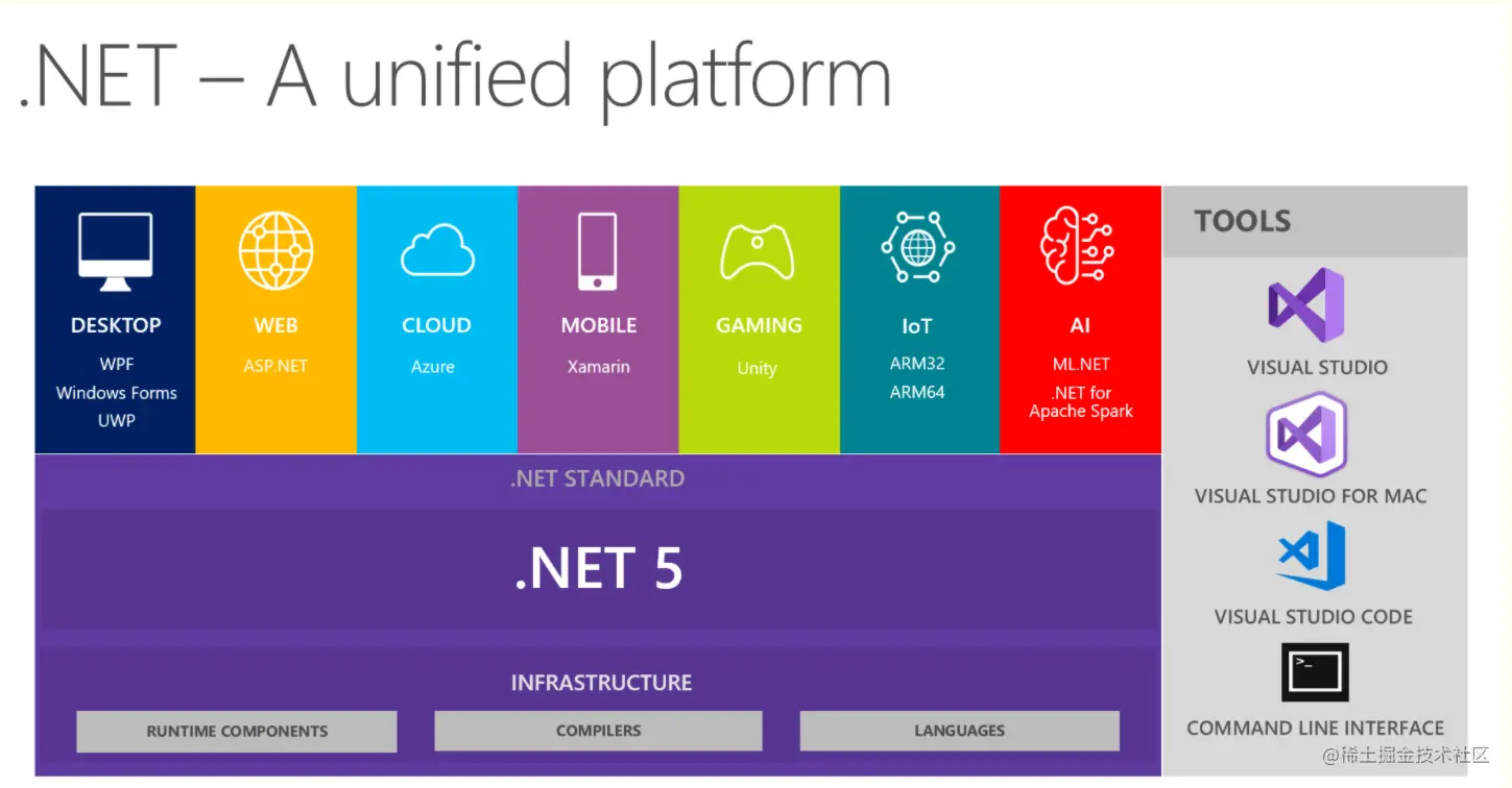 NET 5.0是.NET统一之旅的第一个版本。微软希望 .NET Framework 开发者能够迁移他们的代码和应用到 .NET 5.0 上,为明年发布的 .NET 6.0 将 Xamarin 开发者过渡到统一平台奠定基础。