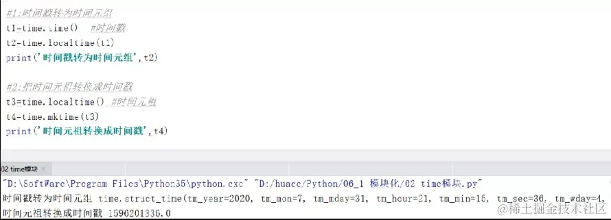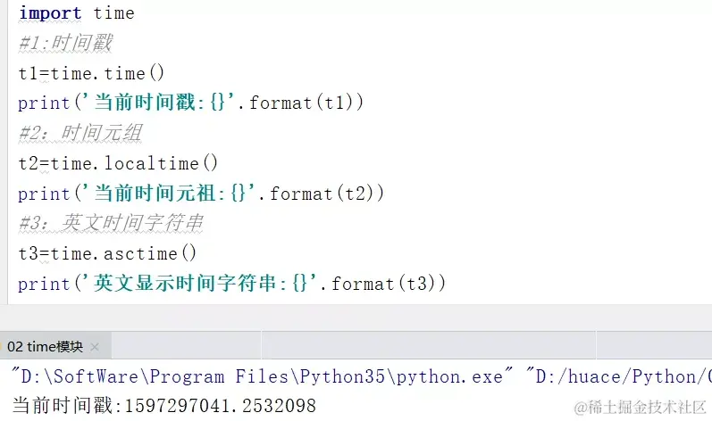 案例1:使用内置time模块,分别获取当前时间戳、时间元组以及英文时间字符串