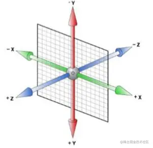 transform属性不止能实现2D转换,也可以制作3D立体转换效果,比普通的x、y轴组成的平面效果多了一条z轴,如下图所示
