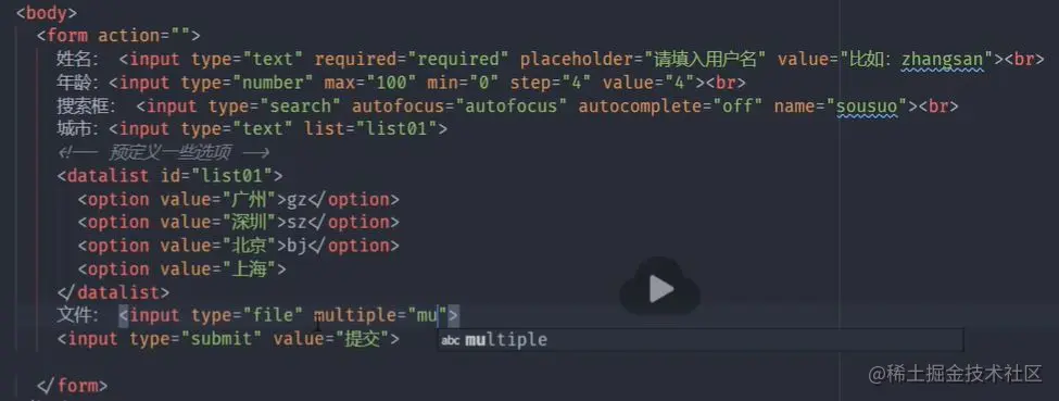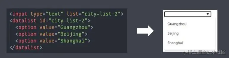 - 含义:规定了<input>元素可能的选项列表