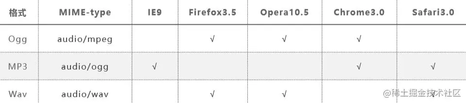 HTML5在不使用插件的情况下也可以原生的支持音频格式文件的播放,当然支持格式是有限的。 音频格式: