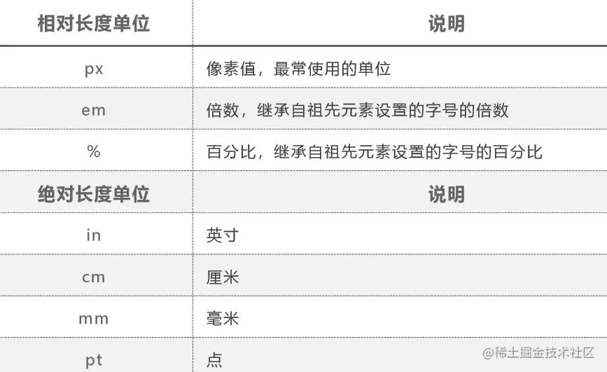 属性值使用相对长度单位,也可以使用绝对长度单位。推荐使用相对长度单位。