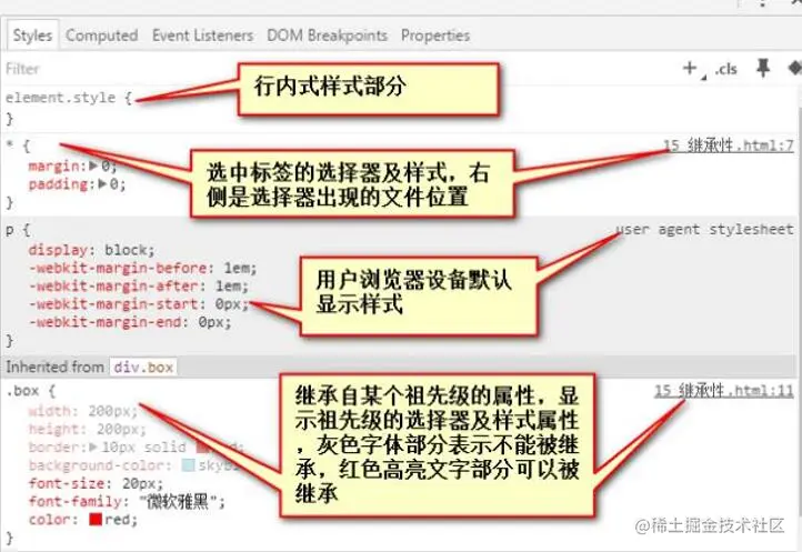 能够被继承的样式是所有的文字属性,其他的属性都不能继承。