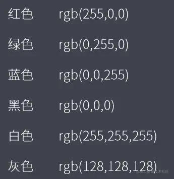 - 书写方法:rgb(红,绿,蓝)