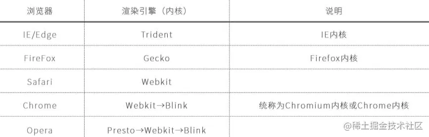 主流浏览器内核:因为不同浏览器使用内核及所支持的HTML等网页语言标准不同,对网页的渲染效果会有差异。