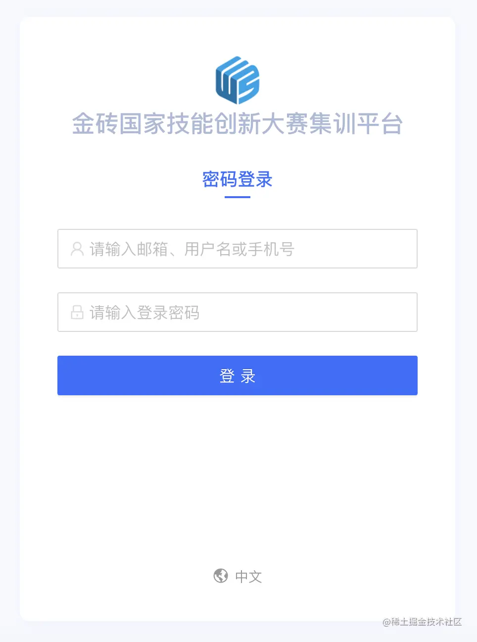金砖技能大赛集训平台登录页面(由 Authing 支持)