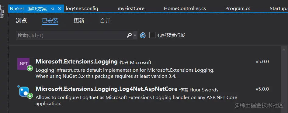 5.F5运行项目(测试项目是简单的mvc),定位到目标的函数,打开日志查看【路径:D:我的D项目\myFirstCore\myFirstCore\bin\Debug\netcoreapp3.1\Log】