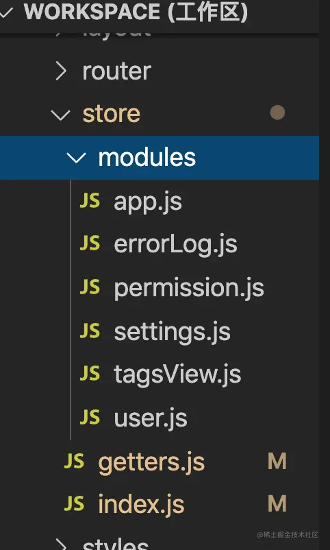 1.在store目录下创建一个modules文件夹,里面存放分割的多个模块(module),如下图所示