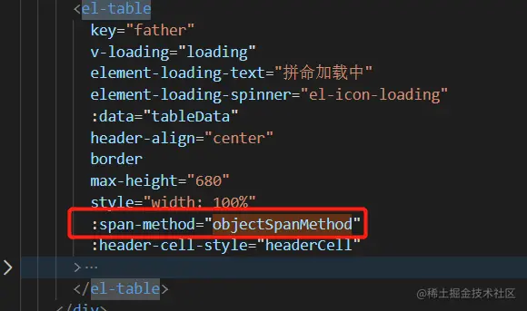 2.在el-table中设置属性:span-method="objectSpanMethod",如图下
