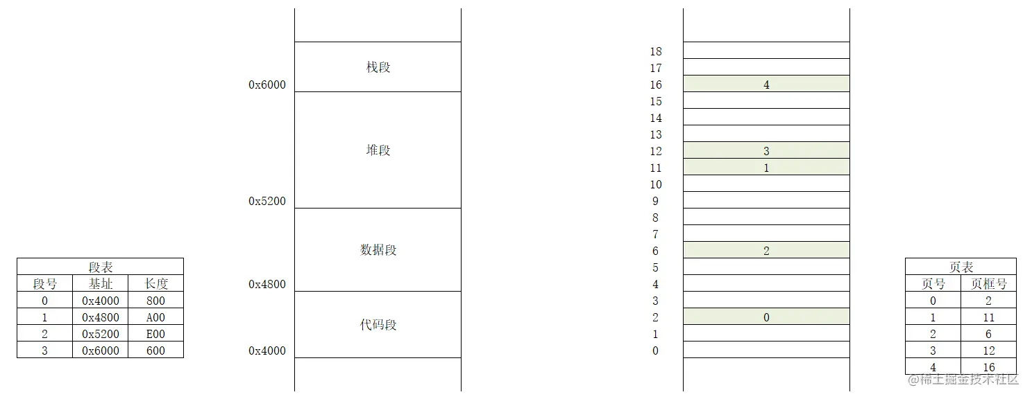 操作系统有如下的数据结构来保存不同段的基址,称为段表。