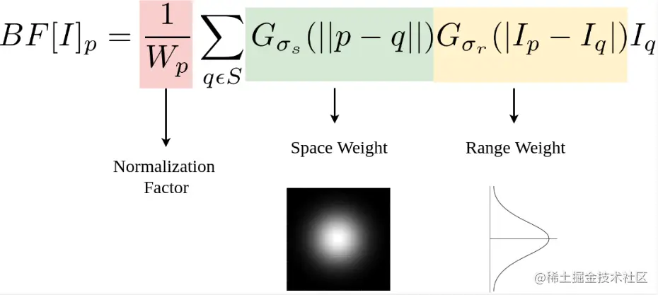 双边滤波的核函数是空间域核与像素范围域核的综合结果: