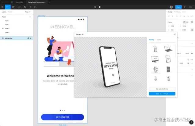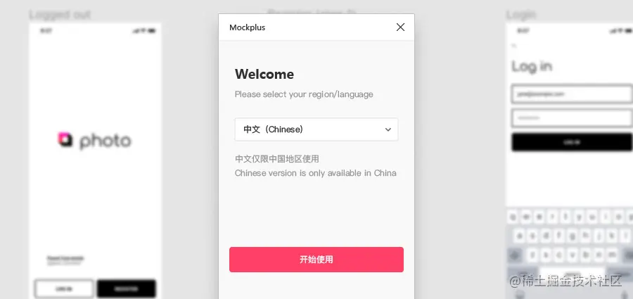 在Figma的画布空白区域点击右键,依次选择Plugins > Mockplus,稍作等待后弹出主界面。初次使用语言一定要选择中文,才能使用中国区的服务器。