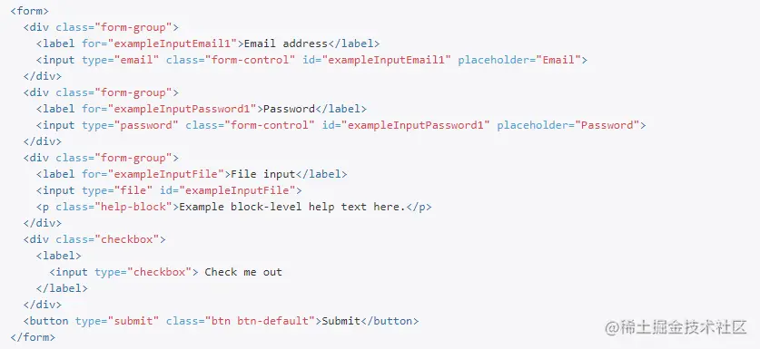 单独的表单控件会被自动赋予一些全局样式。所有设置了 .form-control 类的 < input>、< textarea> 和 < select> 元素都将被默认设置宽度属性为 width: 100%;。 将 label 元素和前面提到的控件包裹在 .form-group 中可以获得最好的排列。