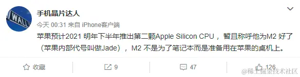苹果第二颗自研处理器曝光:或命名 M2 专为桌面准备