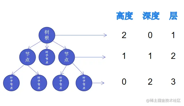 除此之外,树还有以下几个概念高度,深度,层