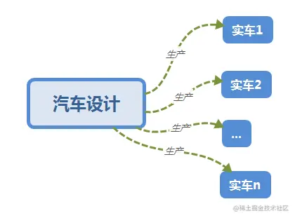 类是对事物的抽象,对象是类所描述的具体事物。类与对象的关系就像汽车设计图与汽车实车的关系: