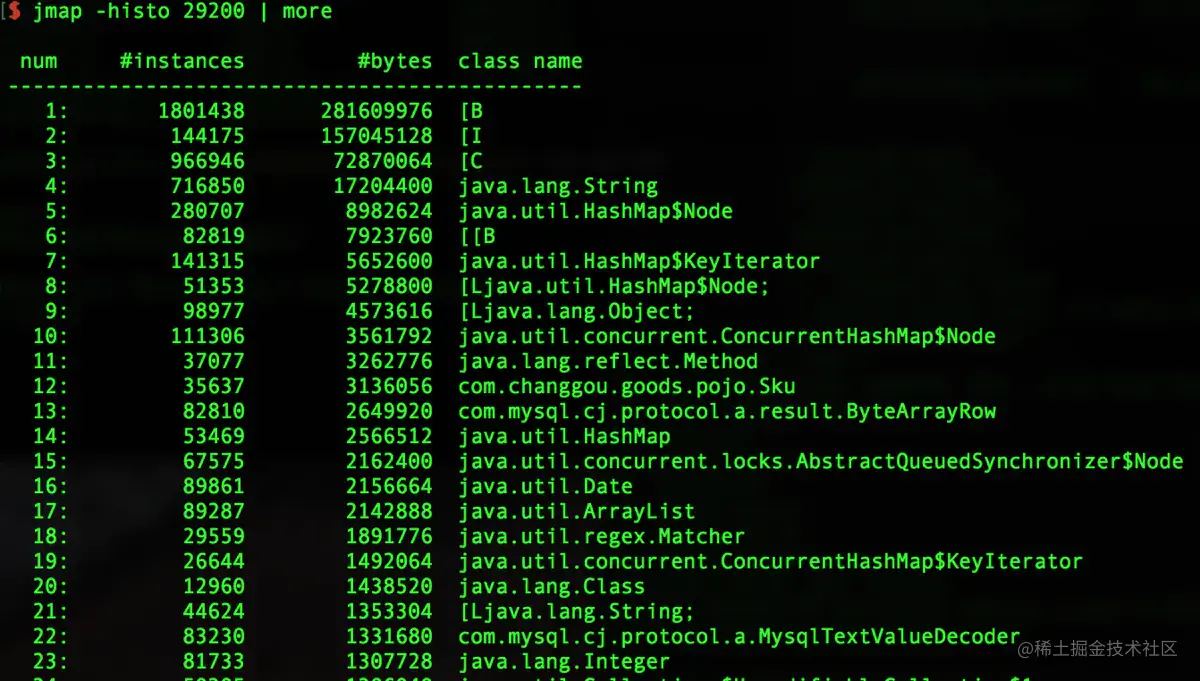 例如 jmap -dump:format=b,file=dumptest.dat 29200 会生成一份29200内存使用情况的二进制文件dumptest.dat