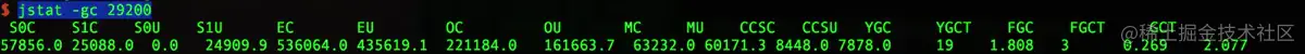 jstat -gc 29200 1000 10 每1000毫秒(1秒)钟打印一次gc使用情况, 总共打印10次