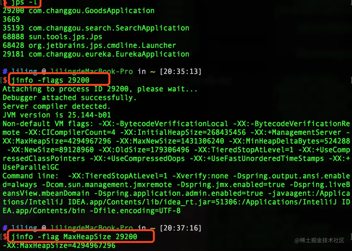 jinfo -flag MaxheapSize 29200 查看pid下的具体某一jvm信息
