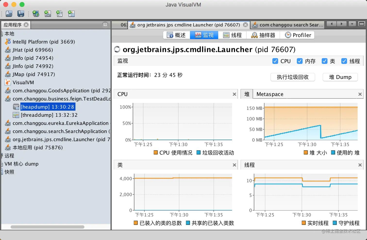 综合的结合了以上介绍jvm性能查看的jdk自带可视化工具: