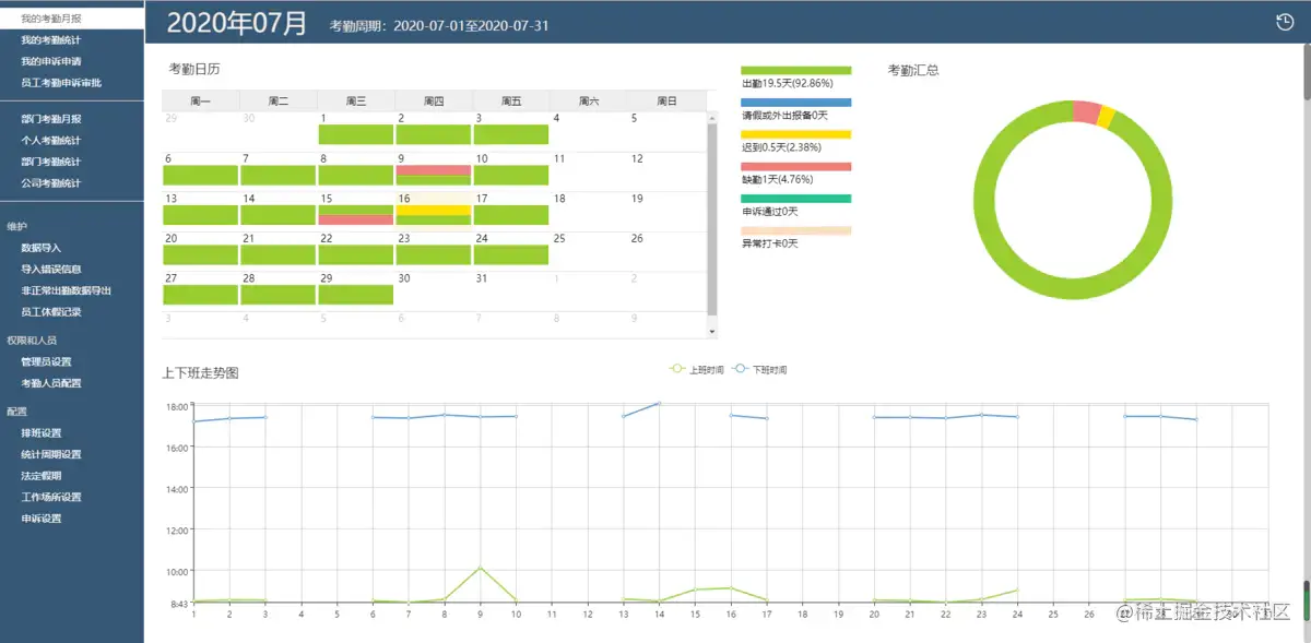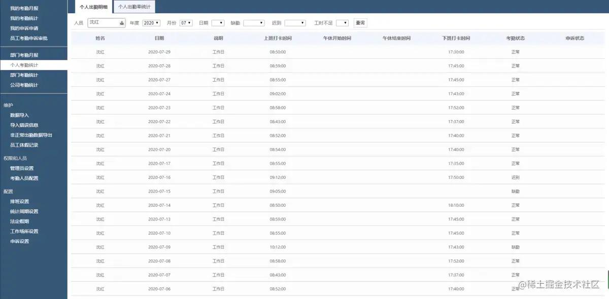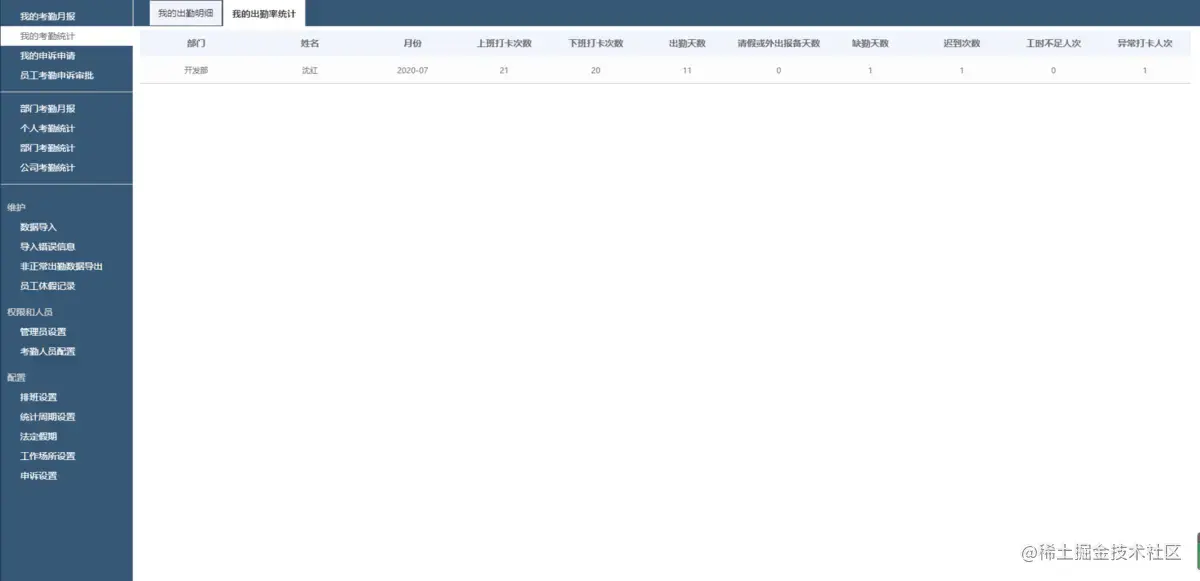 4.个人考勤统计: