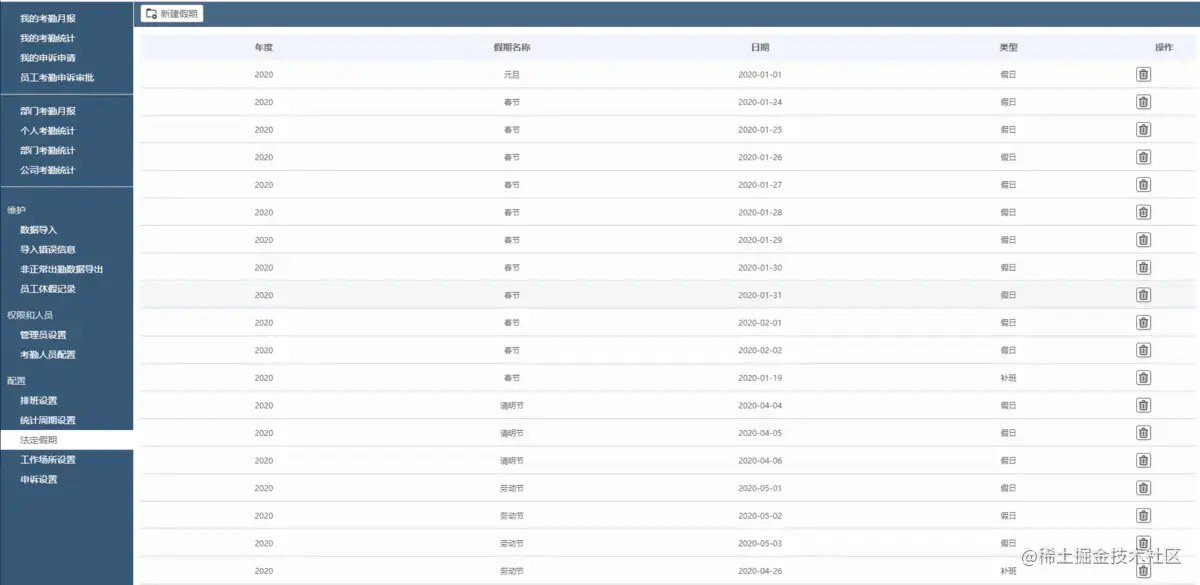10.法定假期设置: