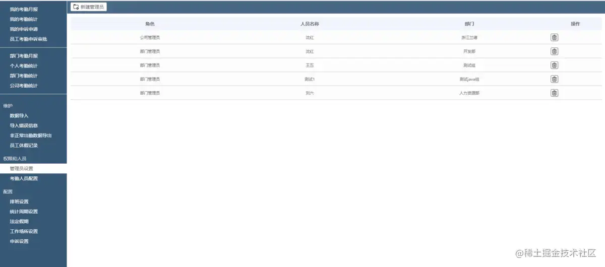 7.考勤管理员设置: