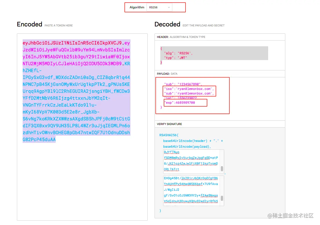 注意我标注红框的位置,需要做对应的配置,exp一定要配置,不然会当成过期token。