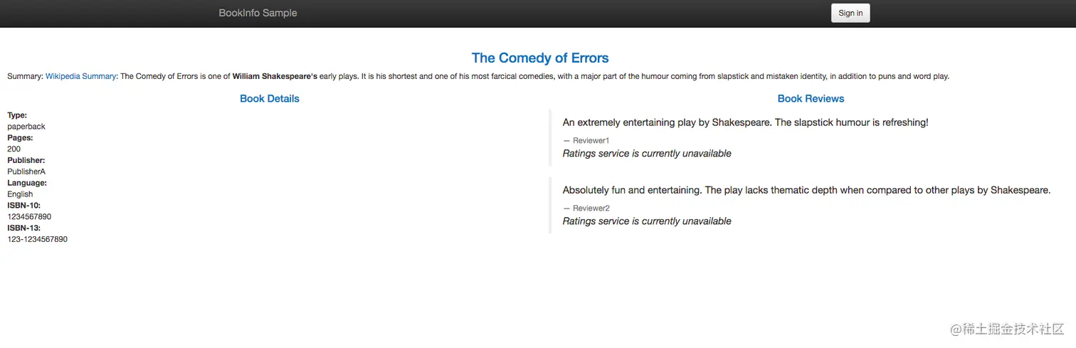发现页面右下角的 Book Reviews 显示了错误信息:“Ratings service is currently unavailable”,此时无法调起对应的mongo数据,对27017端口单独创建一个允许规则。