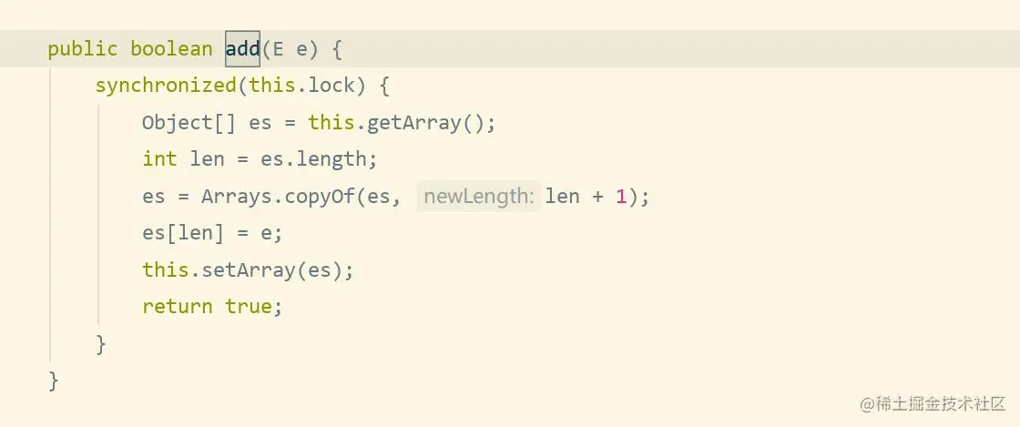 看上面的代码后也许要问了,他这也使用了同步代码块,我自己使用同步代码块用ArrayList不香吗;,这里我们就要看下this.lock和定义的数组了;
