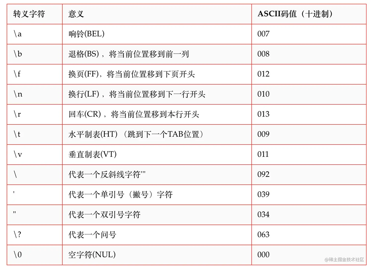 因此对于一些常用并且比较特殊字符,我们习惯用另一种类似别名的方式,比如使用 \n 表示换行,它与 \012 、\x0a 是等价的。