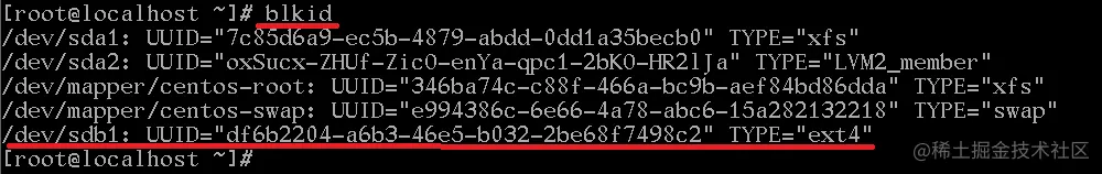 """ 把文件/dev/sdb1 改成UUID也可以实现自动挂载(blkid查看UUID);