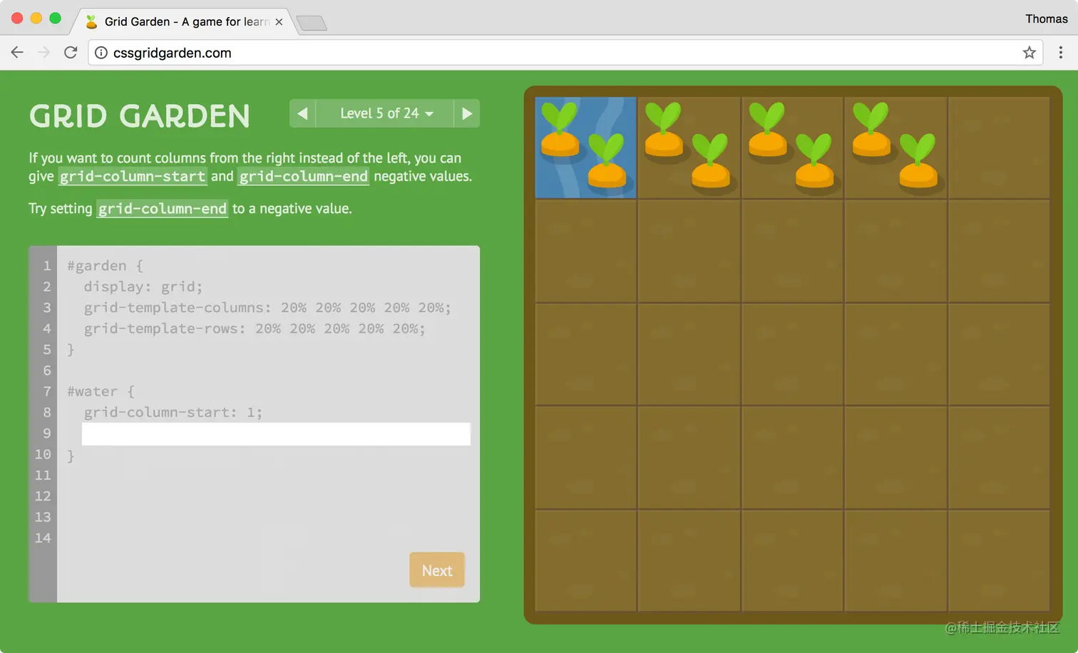 接着我发现了Grid Garden,这是Flexbox Froggy的续集。这次,您将学习CSS网格,新的热门布局模块,并在此过程中种植一两个胡萝卜。