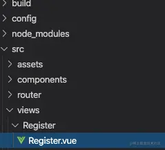 - 首先在views文件下创建Register文件,Register文件目录下新建Register.vue文件。这个文件中主要做注册页面的开发