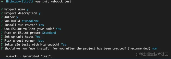 vue init webpack test (test是我的项目名称)
