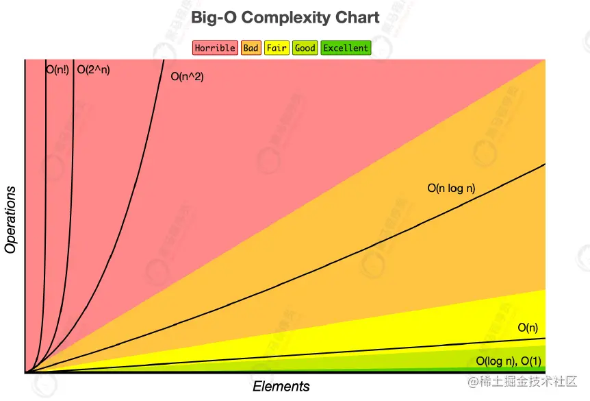为了某种运算而花费的时间,使用大写O表示。一般来讲,时间是一个不太容易计量的维度,而为了计算时间复杂度,通常会估计算法的操作单元数量,而假定每个单元运行的时间都是相同的。一般来讲,常见时间复杂度有以下几种: