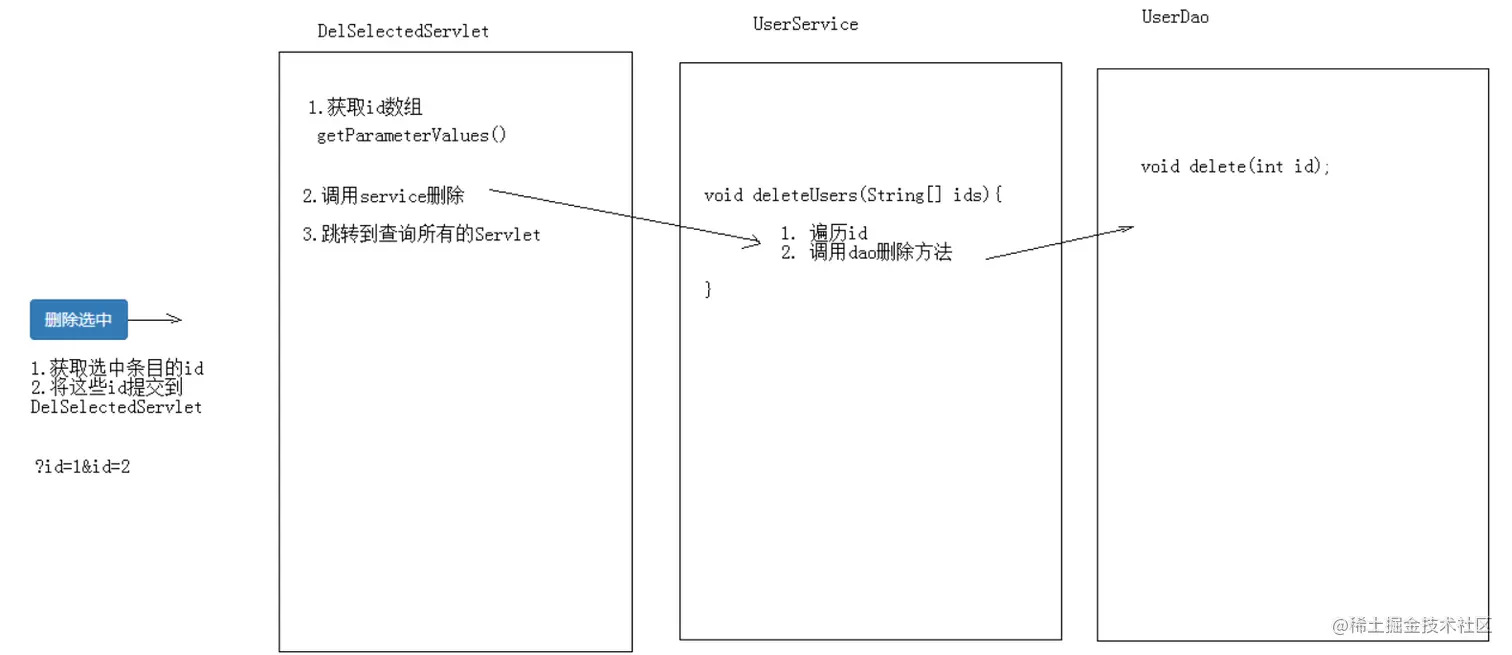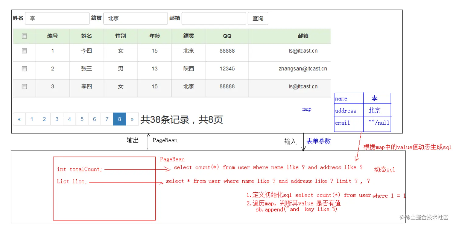 day14_综合案例 落霞不孤 2020-11-26 142 阅读1分钟 一、今日内容 综合练习:客户信息管理系统 简单功能 列表查询 登录 添加 删除 修改 复杂功能 删除选中 分页查询 好处: 减轻服务器内存的开销 提升用户体验 复杂条件查询 二、功能实现分析 2.1 简单功能 登录 列表查询 添加 删除 修改 2.2 复杂功能 删除选中 分页查询 复杂条件查询