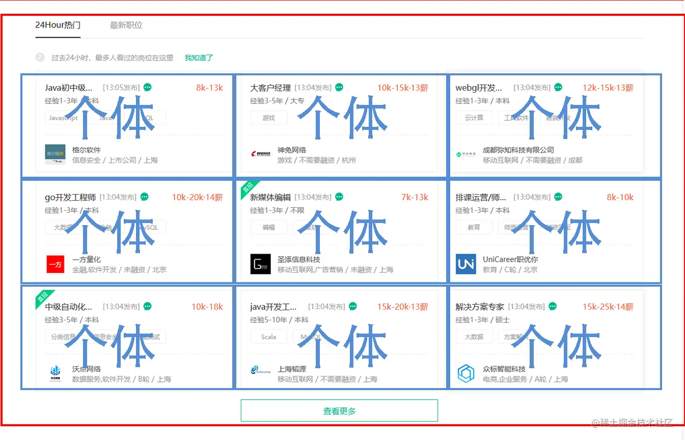 特点:对高度没需求,但是要展示的个体数量较多