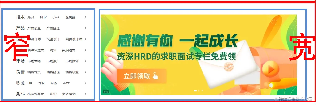 - 一般浏览器居中位置为主要内容展示区