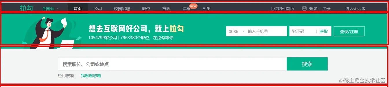 将拉钩网站划分示意图: