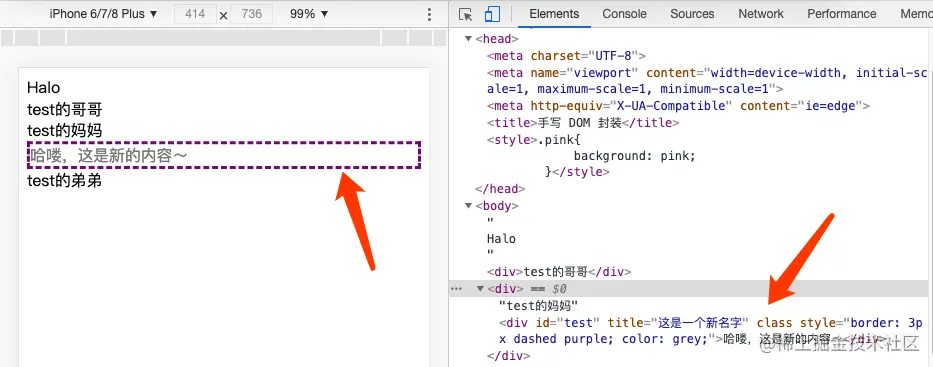 这里还可以优化成 ⬇️ ,兼容 innerText(展示给人看的元素) 和 textContent (所有元素内容),这个操作叫做适配