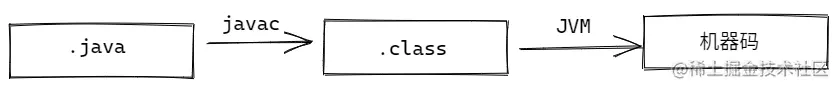 我们编译的源代码(xxx.java)经 JDK 中的 javac 命令编译后,成为 JVM 能够理解的 Java 字节码(xxx.class),然后经由 JVM 加载,通过解释器 逐行解释执行,这就是为什么能经常听见说 Java 是一门编译和解释共存的语言。