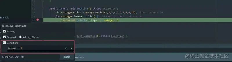 IDEA 可以设置指定条件的断点,增加我们调试的效率。IntelliJ IDEA 调试 Java 8 Stream,推荐看下。